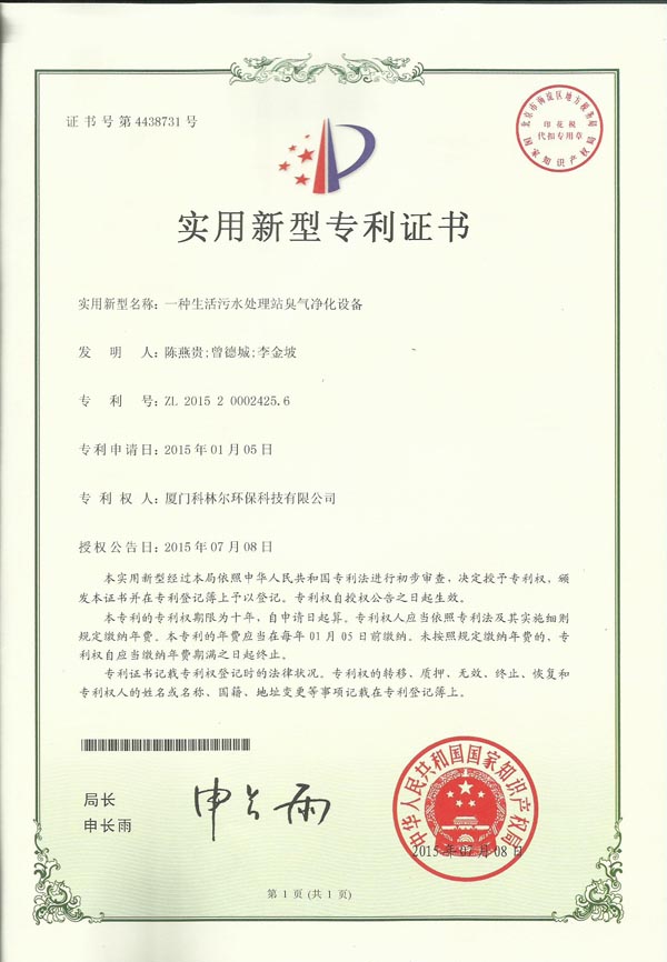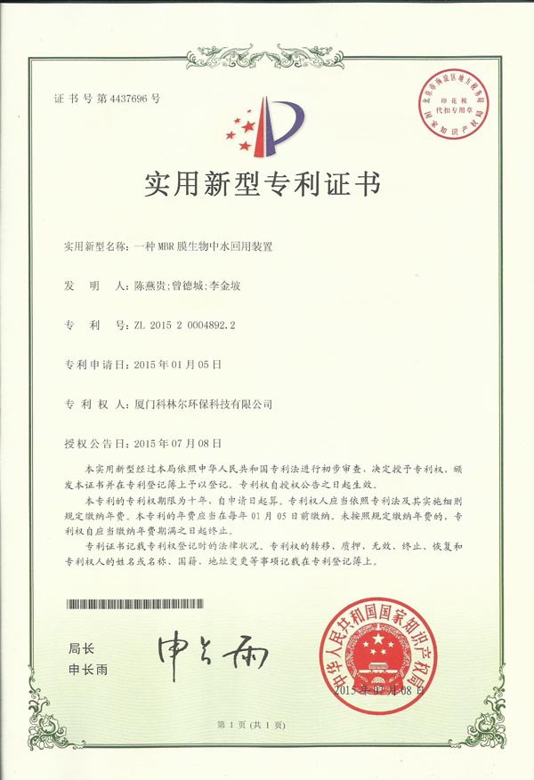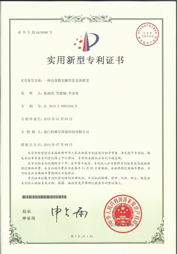 恭贺厦门科林尔环保新专利申请通过