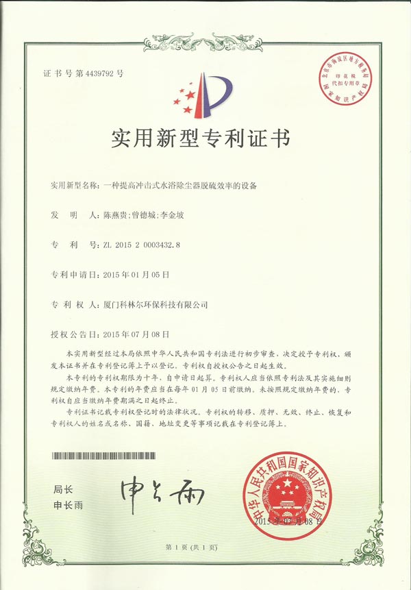 恭喜本司新专利申请成功。我们会继续保持专研精神,发现更多有价值的新技术为环保事业添一份力量。